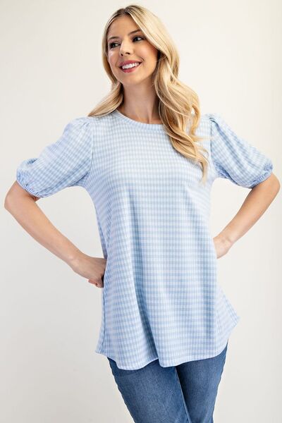 Celeste Full Size Gingham Print Top With Puff Sleeves Plus Size