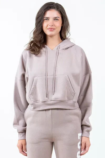 American Bazi Letter Graphic Long Sleeve Drawstring Cropped Hoodie